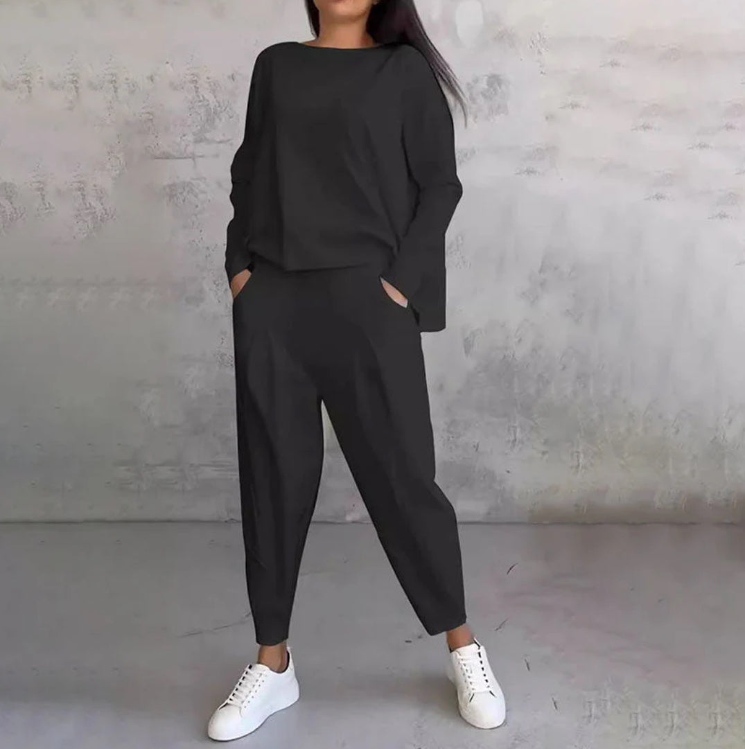 Изработен от мек, дишащ материал 🌬️, този комплект осигурява целодневен комфорт. Леката материя е приятна на допир, което я прави идеална за излежаване у дома или за бързи излизания 🏠🏃♀️.
