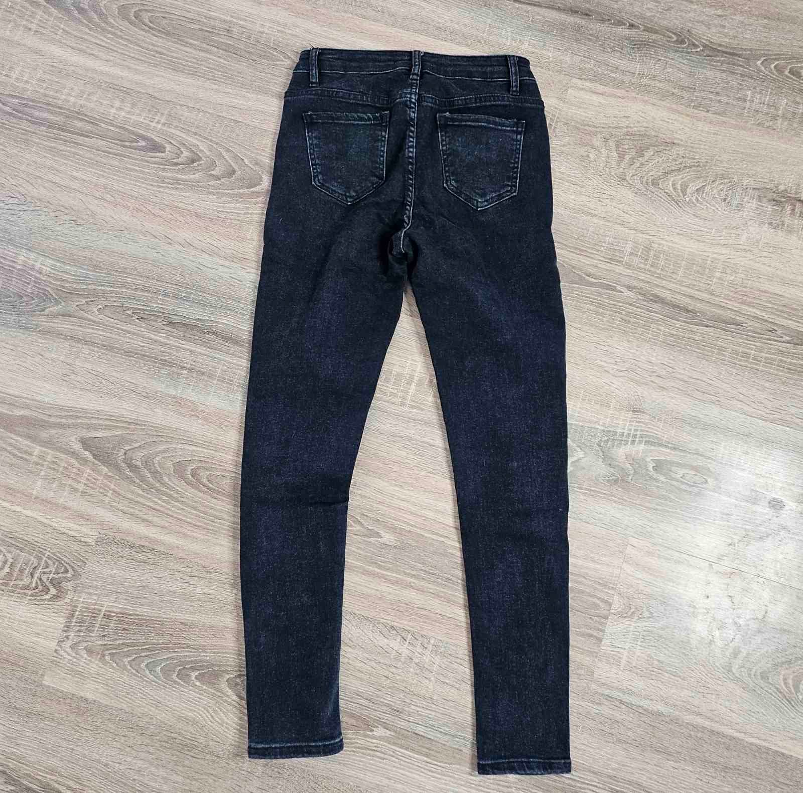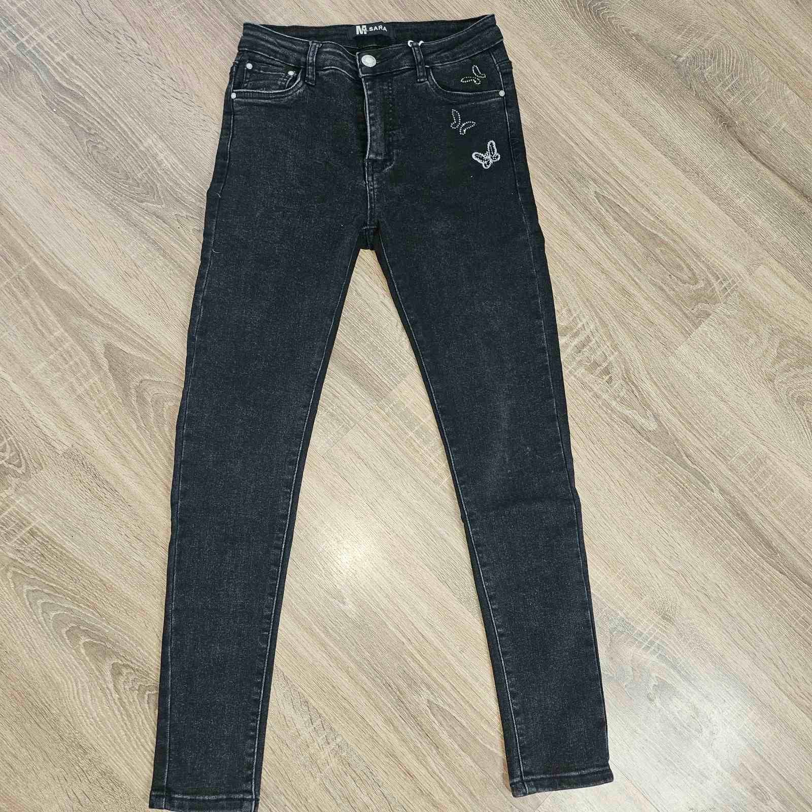 Скини дънки подчертаващи силуета. Цветът е черен деним, който придава по - елегантен вид.